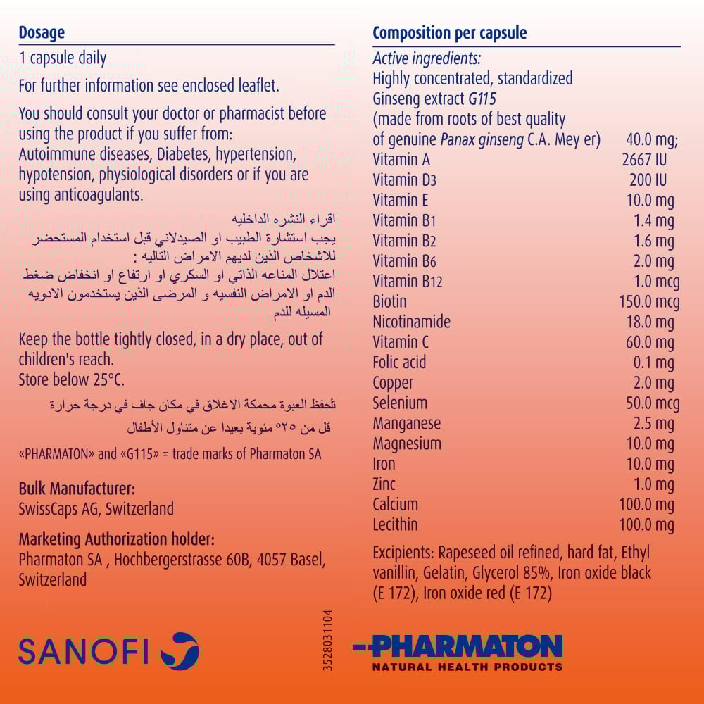 فارماتون® فيتامينات متعددة مع الجينسنج للطاقة والنشاط - 100 كبسولة