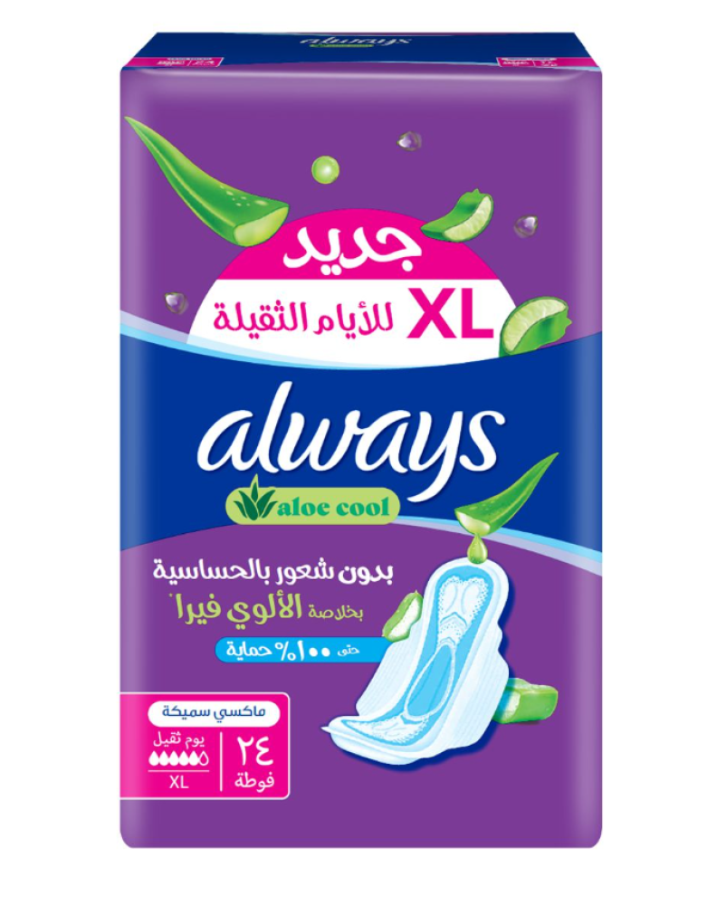 أولويز، فوط نسائية ألو كوول، للأيام الثقيلة، ماكسي - 24 قطعة