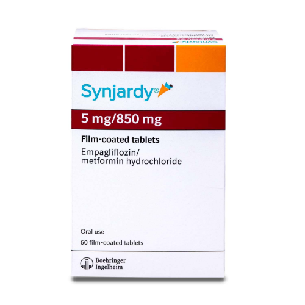 إمباغليفلوزين ، ميتفورمين أقراص 850 مجم ، 5 مجم ما هو إمباغليفلوزين ، ميتفورمين وما هي دواعي استعماله:يحتوي هذا الدواء على مادتين فعالتين إمباغليفلوزين وميتفورمين. ينتمي كل منها إلى مجموعة من الأدوية تسمى "الأدوية المضادة للسكري عن طريق الفم". هذه أدوية تؤخذ عن طريق الفم لعلاج مرض السكري من النوع الثاني.ما هو مرض السكري من النوع 2؟مرض السكري من النوع 2 هو مرض يأتي من جيناتك وأسلوب حياتك. إذا كنت مصابًا بداء السكري من النوع 2 ، فلن ينتج البنكرياس ما يكفي من الأنسولين للتحكم في مستوى الجلوكوز في الدم ، ولا يستطيع جسمك استخدام الأنسولين الخاص به بشكل فعال. يؤدي هذا إلى ارتفاع مستويات الجلوكوز في الدم مما قد يؤدي إلى مشاكل طبية مثل أمراض القلب وأمراض الكلى والعمى وضعف الدورة الدموية في أطرافك.كيف يعمل إمباغليفلوزين ، ميتفورمين:• إمباغليفلوزين ينتمي إلى مجموعة من الأدوية تسمى مثبطات الجلوكوز الصوديوم الناقل - 2 (SGLT2). إنه يعمل عن طريق منع بروتين SGLT2 في كليتيك. يؤدي هذا إلى إزالة سكر الدم (الجلوكوز) في البول.• ميتفورمين يعمل بطريقة مختلفة لخفض مستويات السكر في الدم ، بشكل رئيسي عن طريق منع إنتاج الجلوكوز في الكبد.• يخفض هذا الدواء من كمية السكر في الدم. يمكن أن يساعد هذا الدواء أيضًا في الوقاية من أمراض القلب.لماذا يستخدم إمباغليفلوزين ، ميتفورمين:• إمباغليفلوزين ، ميتفورمين يضاف إلى النظام الغذائي والتمارين الرياضية لعلاج مرض السكري من النوع 2 لدى المرضى البالغين (18 سنة وما فوق) الذين لا يمكن السيطرة على مرض السكري عن طريق إضافة الميتفورمين وحده أو الميتفورمين مع أدوية أخرى لمرض السكري.• يمكن أيضًا دمج إمباغليفلوزين ، ميتفورمين مع أدوية أخرى لعلاج مرض السكري. قد تكون هذه الأدوية عن طريق الفم أو عن طريق الحقن مثل الأنسولين.• بالإضافة إلى ذلك ، يمكن استخدام هذا الدواء كبديل لأخذ كل من إمباغليفلوزين وميتفورمين كأقراص مفردة. لتجنب الجرعة الزائدة ، لا تستمر في تناول أقراص إمباغليفلوزين والميتفورمين بشكل منفصل ، إذا كنت تتناول هذا الدواء.• من المهم أن تستمر في نظامك الغذائي وخطة التمارين الرياضية كما أخبر طبيبك أو الصيدلي أو الممرضةما تحتاج إلى معرفته قبل استخدام الترومبوباج أولامين لا تستخدم الترومبوباج أولامين :• إذا كنت تعاني من حساسية تجاه إمباغليفلوزين أو ميتفورمين أو أي من المكونات الأخرى لهذا الدواء• إذا كنت تعاني من مرض السكري غير المتحكم فيه ، على سبيل المثال ، فرط سكر الدم الشديد (ارتفاع شديد في مستوى الجلوكوز في الدم) ، أو الغثيان ، أو القيء ، أو الإسهال ، أو فقدان الوزن السريع ، أو الحماض اللبني أو الحماض الكيتوني. الحماض الكيتوني هو حالة تتراكم فيها مواد تسمى "الأجسام الكيتونية" في الدم ويمكن أن تؤدي إلى مرحلة ما قبل غيبوبة السكري. تشمل الأعراض آلام في المعدة ، والتنفس السريع والعميق ، والنعاس أو ظهور رائحة فاكهية غير عادية في التنفس ؛• إذا كان لديك مرض السكري قبل الغيبوبة.• إذا كنت تعاني من قصور شديد في وظائف الكلى.• إذا كنت تعاني من عدوى شديدة مثل العدوى التي تصيب الرئة أو الشعب الهوائية أو الكلى. قد تؤدي العدوى الشديدة إلى مشاكل في الكلى ، مما قد يعرضك لخطر الإصابة بالحماض اللبني• إذا فقدت الكثير من الماء من جسمك (الجفاف) ، على سبيل المثال بسبب إسهال طويل الأمد أو شديد ، أو إذا تقيأت عدة مرات متتالية. قد يؤدي الجفاف إلى مشاكل في الكلى ، مما قد يعرضك لخطر الإصابة بالحماض اللبني• إذا كنت تعالج من قصور حاد في القلب أو تعرضت مؤخرًا لنوبة قلبية ، أو لديك مشاكل خطيرة في الدورة الدموية (مثل الصدمة) أو لديك صعوبات في التنفس. قد يؤدي هذا إلى نقص في إمداد الأنسجة بالأكسجين مما قد يعرضك لخطر الإصابة بالحماض اللبني• إذا كنت تعاني من مشاكل في الكبد.• إذا كنت تشرب كميات كبيرة من الكحول ، إما كل يوم أو فقط من حين لآخرالمحاذير والإحتياطات:خطر الإصابة بالحماض اللبنيإمبا